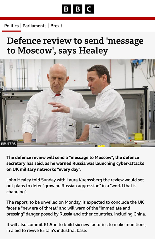 The UK Government announces a “Defence Review” and the creation of at least six more armament factories.