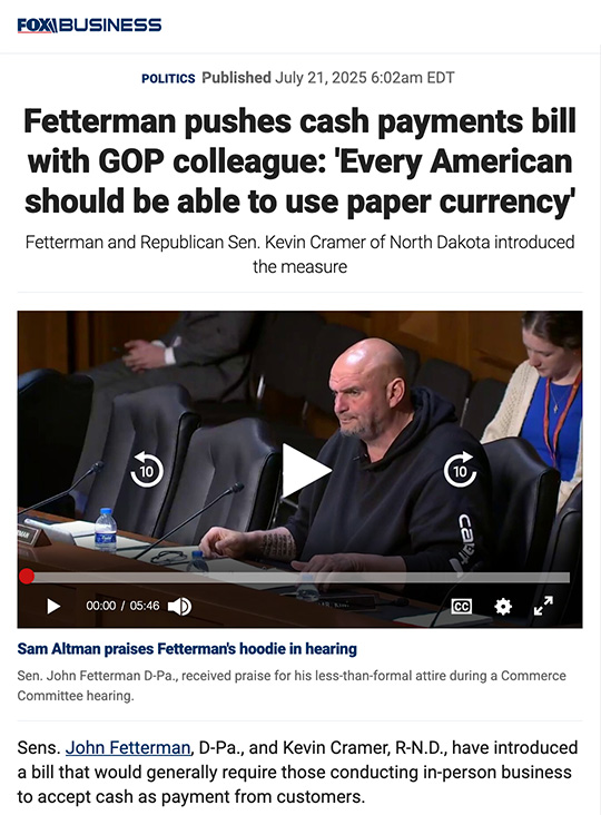 Unfortunately, this sentence badly undermines the value of the potential US cash acceptance legislation: