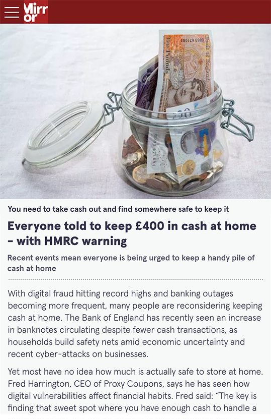 Source: mirror.co.uk/money/everyone-told-keep-400-cash-35453860.amp