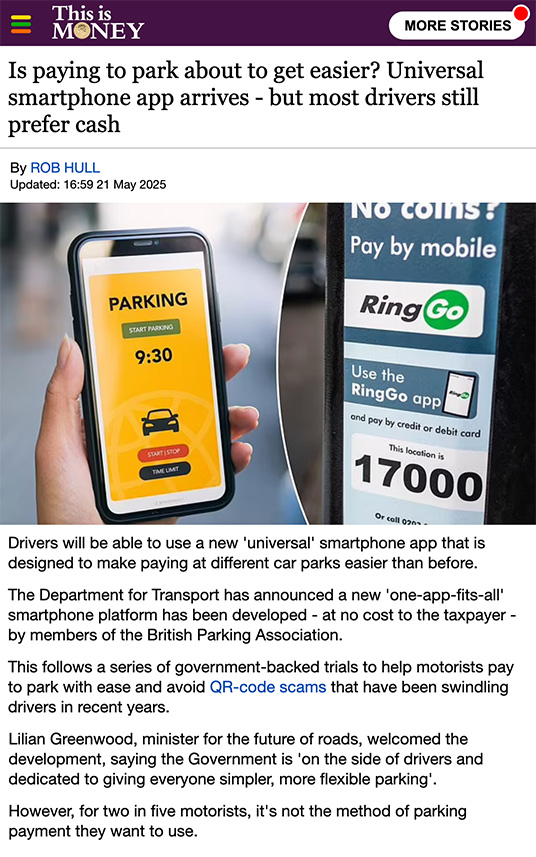 The PCA told Department of Transport officials face-to-face two years ago that creating a “Universal Parking App” would NOT be providing genuine Payment Choice to the British public who want to use cash.
